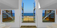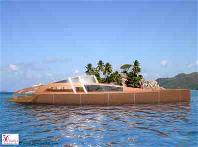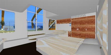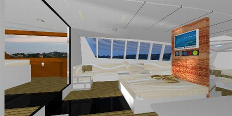 | the master stateroom gives access to an amazing stern-terrace surrounded by unfolding walls that are perforatet to provide views into the environment when closed | | |